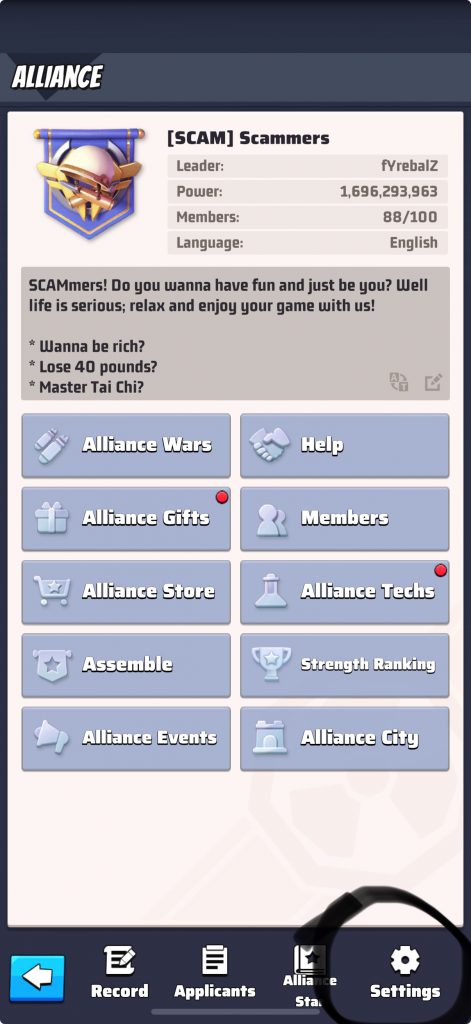 Step 1: Go to “Alliance”