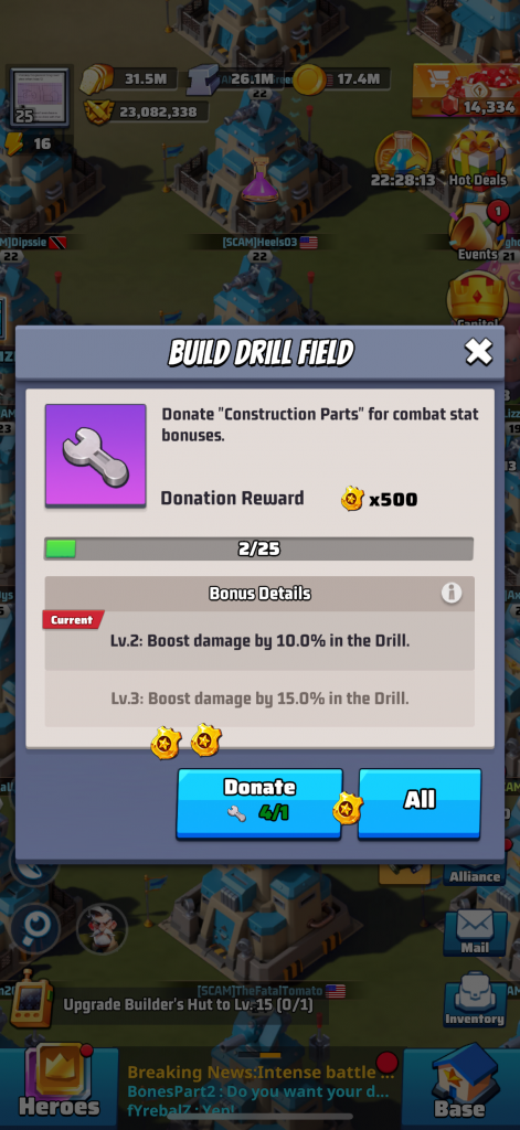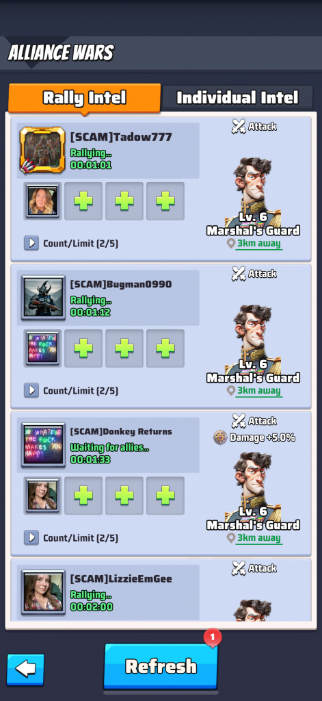 NOTE: Do not donate to the first level of Marshall Guard until you assess if your alliance can defeat it!