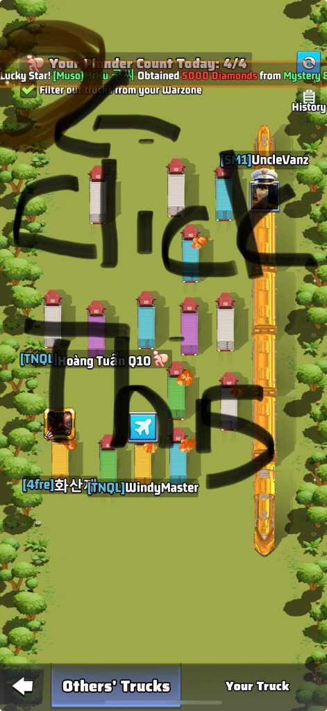Just click a truck to raid. With the filter on, you will be taken to another server. Click. A Truck. Any. Truck.